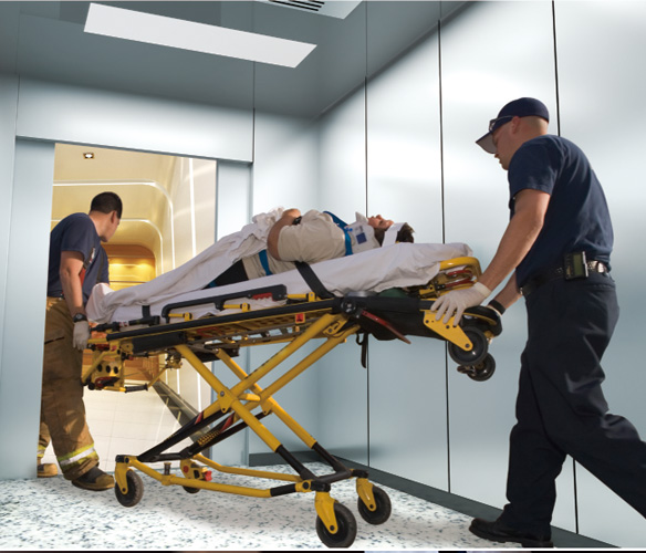 为响应国家政策需求,奥帝亚电梯在自有技术的基础上,积极研发制造担架电梯,并根据现有建筑实际情况,对担架梯的加装提供了完善的解决方案。担架电梯以国家标准尺寸为考量,结合现实建筑空间现象,进一步优化设计,确保轿厢空间可充分容纳一台担架,为高层建筑内的用户提供了一份紧急情况下的就医绿色通道。